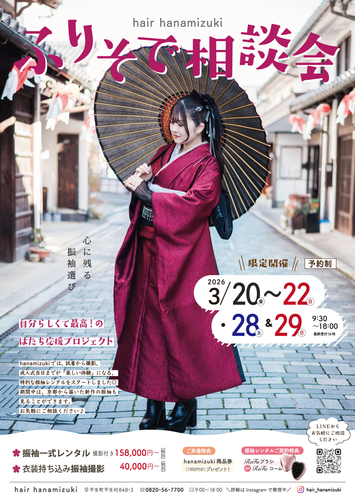 hair hanamizukiへのご予約・お問い合わせはこちら